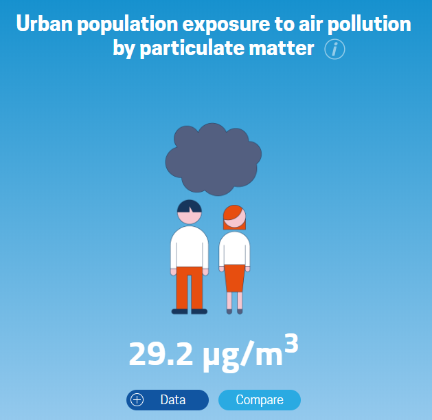 Después de elegir un país, puedes seleccionar una dimensión de la calidad de vida. Normalmente se presentan dos indicadores distintos para cada una. En la mayoría de los casos, un indicador ofrece información sobre el nivel de satisfacción de las personas y, el otro, información objetiva de esa dimensión.