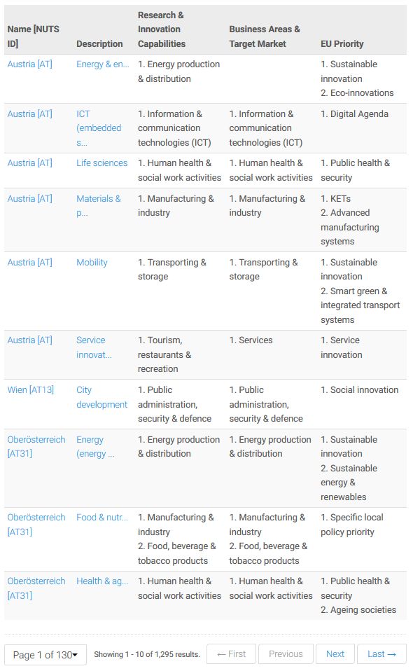 Recopila y presenta las prioridades de innovación de casi todos los estados y regiones de la Unión Europea y países vecinos para el periodo 2014-2020