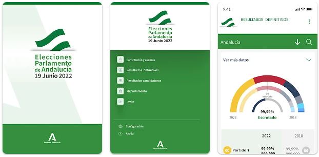 Aplicación oficial y gratuita que la Junta de Andalucía pone a disposición de la ciudadanía para consultar los resultados de las elecciones al Parlamento de Andalucía del 19 de junio de 2022