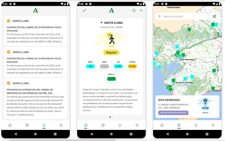 La aplicación proporciona valores reales de los parámetros medidos por los diferentes sensores que constituyen la Red de Vigilancia y Control de Calidad del Aire de Andalucía, teniendo en cuenta que, al referirse al índice de Calidad del Aire, los datos proporcionados aplican a estos cinco contaminantes clave.