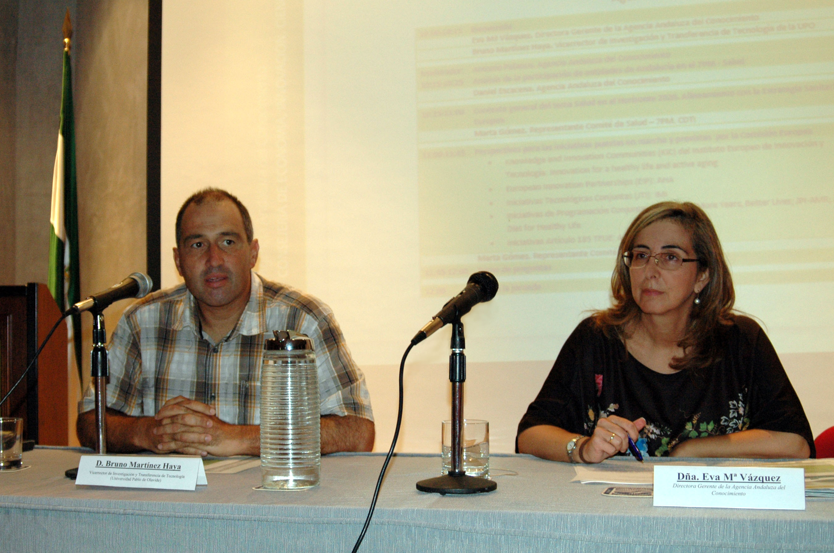 Vázquez ha inaugurado esta mañana junto al vicerrector de Investigación y Transferencia de Tecnología de la Universidad Pablo de Olavide, Bruno Martínez Haya, una jornada informativa sobre las posibilidades de financiación que ofrecerá el Horizonte 2020, el nuevo Programa Marco de I+D+i que la Unión Europea perfila para el periodo 2014-2020. Al encuentro, centrado en el sector de la salud, ha acudido también la representante del Comité de Salud del Centro para el Desarrollo Tecnológico Industrial (CDTI) Marta Gómez.