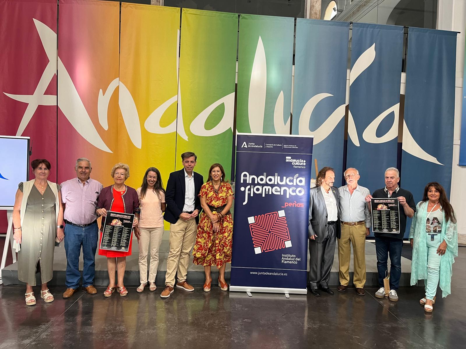 La Consejería de Turismo, Cultura y Deporte, a través del Instituto Andaluz del Flamenco, y la Federaciones Provinciales de Peñas Flamencas, organiza el Circuito Andaluz de Peñas 2024, un proyecto en el que ponen el valor a las peñas en todo el territorio andaluz. Hoy se ha presentado en Málaga su circuito provincial que programa, desde el sábado 7 de septiembre hasta el próximo 24 de noviembre, 29 actuaciones en municipios malagueños. En el acto han participado el director del Instituto Andaluz del Flamenco, Cristóbal Ortega, la delegada territorial de Turismo, Cultura y Deporte, Gemma del Corral y el presidente de la Federación de Peñas de Málaga, Juan Recio.