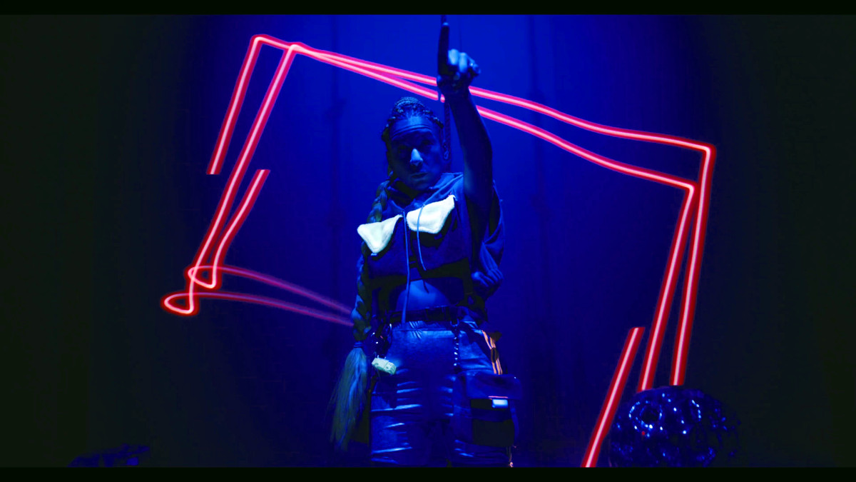‘Mujer en cinta de correr sobre fondo negro’ es una radiografía del ciudadano de barrio humilde en forma de pieza escénica. Entre otras temáticas, Alessandra García reflexiona sobre la superproducción textil, el capitalismo, el entretenimiento, la cultura, los idiomas, los motes y el sector servicios. Para ello, dialoga con los distintos elementos que el espacio escénico le aporta: una cuerda de 9 metros, una pelota gigante, la cinta de correr o un dance-air con el que lidia una batalla a vida o muerte. En resumen, la obra es una conversación entre palabra y movimiento llevado al humor y el pensamiento en un ejercicio de resistencia durante 57 minutos.