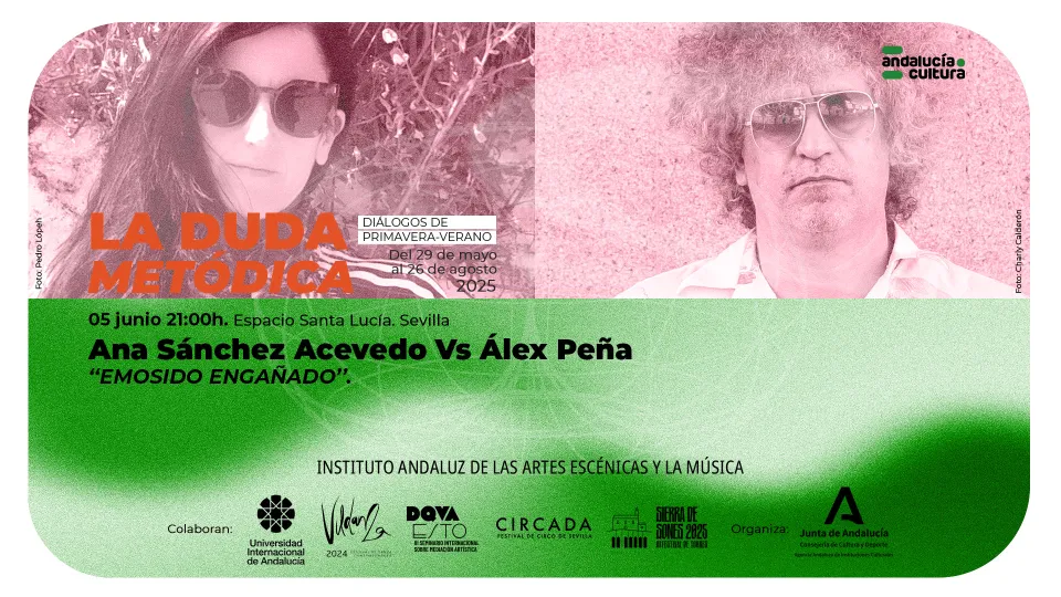 Un nuevo encuentro del ciclo ‘La Duda Metódica’ recala en el Espacio Santa Lucía el próximo jueves día 5 bajo el nombre ‘EMOSIDO ENGAÑADO’, donde los creadores Ana Sánchez Acevedo y Álex Peña charlarán a partir de las 21:00 horas sobre los quehaceres escénicos. La segunda edición del ciclo de encuentros creado por el Instituto Andaluz de la Artes Escénicas y la Música (IAAEM) de la Consejería de Cultura y Deporte y gestionado a través de la Agencia Andaluza de Instituciones Culturales, comenzó el pasado jueves 29 de mayo y contará con un total de ocho conversatorios.