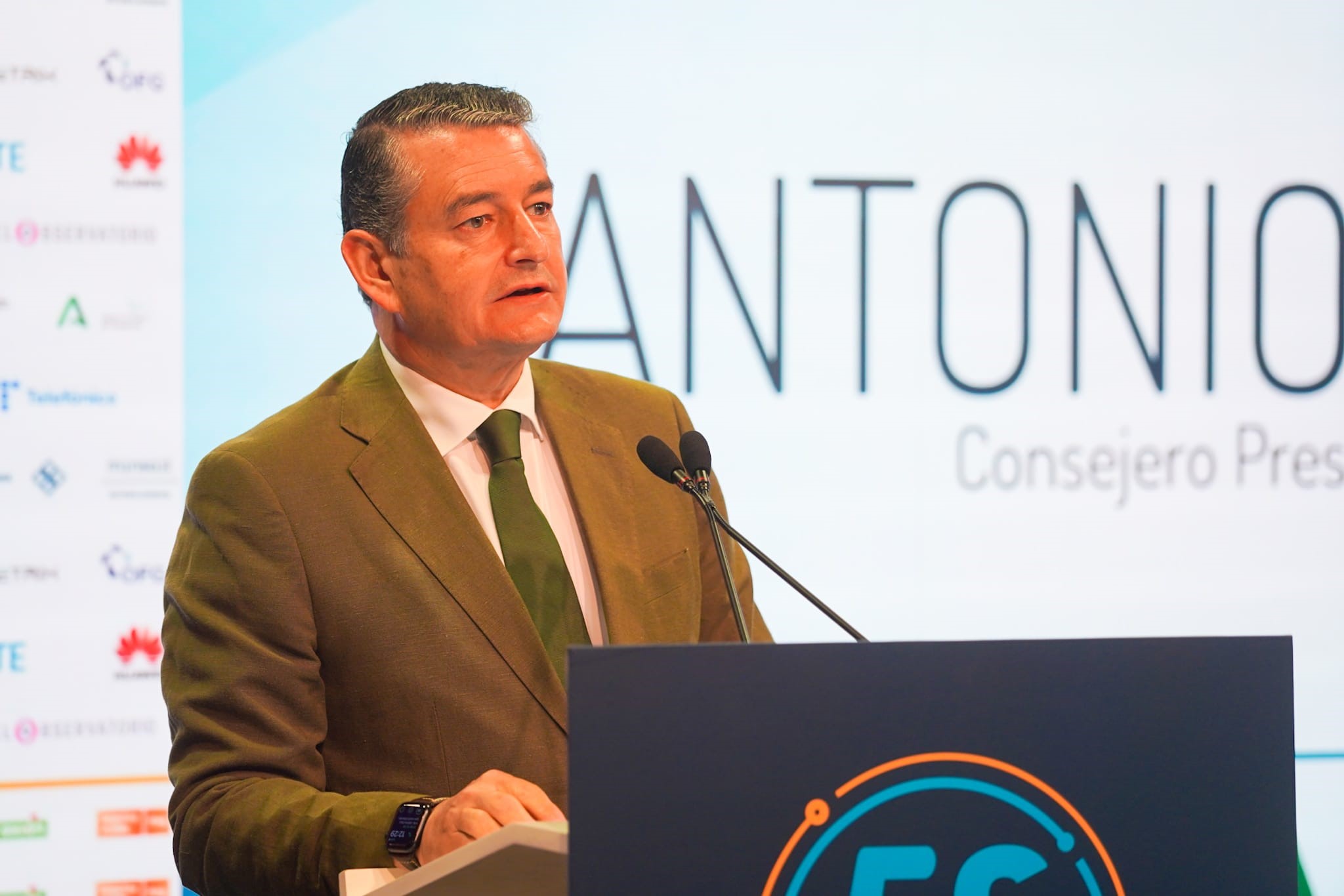 Antonio Sanz, consejero de la Presidencia, Interior, Diálogo Social y Simplificación Administrativa, ha participado en esta primera jornada del foro compartiendo las iniciativas que se están llevando a cabo en materia de conectividad desde la Junta de Andalucía, bajo la coordinación de la Agencia Digital de Andalucía.