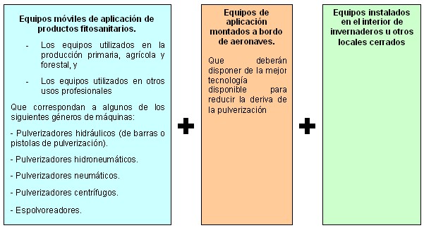 La Dirección General de la Producción Agrícola y Ganadera, en función de las diferencias significativas que existen entre unos tipos de equipamientos y otros (ej: equipos aeronaves, invernaderos u otros locales cerrados), ha desarrollado procedimientos específicos para cada uno de ellos.