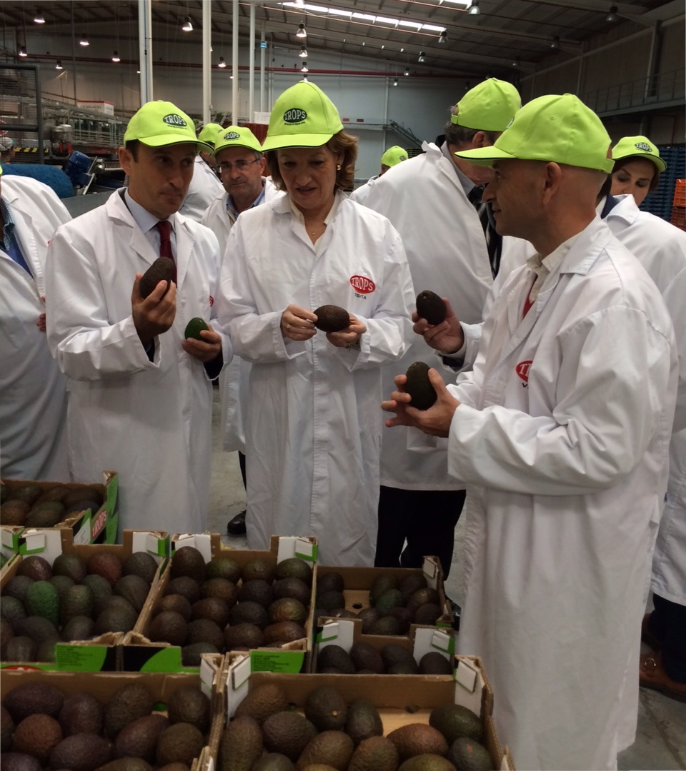 La consejera ha visitado en Vélez Málaga la empresa Trops, dedicada a la producción y comercialización de frutas tropicales, principalmente de aguacate y mango. Actualmente cuenta con 962 productores asociados que producen más de 19.600 toneladas. El valor de la producción comercializada por esta empresa malagueña en 2014 alcanzó los 27 millones de euros, y la facturación ascendió a 71,5 millones de euros. Esta entidad ha realizado importantes inversiones en materia de procesado, envasado y certificaciones de calidad a través de diferentes programas operativos que han contado con subvenciones de la Consejería de Agricultura, Pesca y Desarrollo Rural.