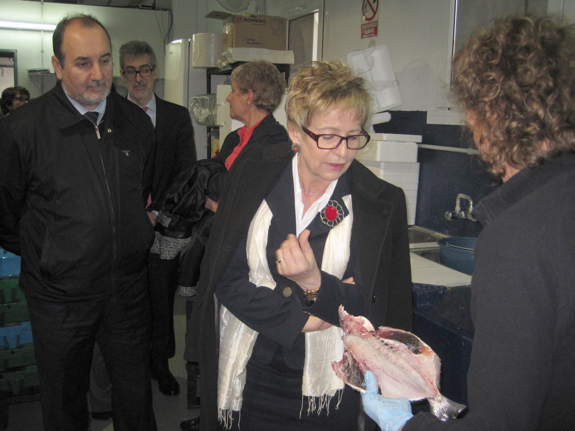 Imagen de la consejera en la Lonja de Pescados de Almería