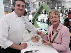 Elena Víboras junto al chef encargado de la demostración de cocina en vivo