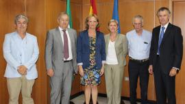 La consejera de Agricultura, Pesca y Desarrollo Rural, Carmen Ortiz, se ha reunido hoy en Sevilla con los presidentes de la Asociación Nacional de Armadores de Buques Congeladores de Pesca de Marisco (Anamar), José Ramón Muriel, de la Asociación de Empresas de Acuicultura Marina de Andalucía (Asema), Antonio Concepción, de la Federación Andaluza de Asociaciones Pesqueras (Faape), Pedro Maza, y de la Federación Andaluza de Cofradías de Pescadores (Facope), Manuel Peinado.