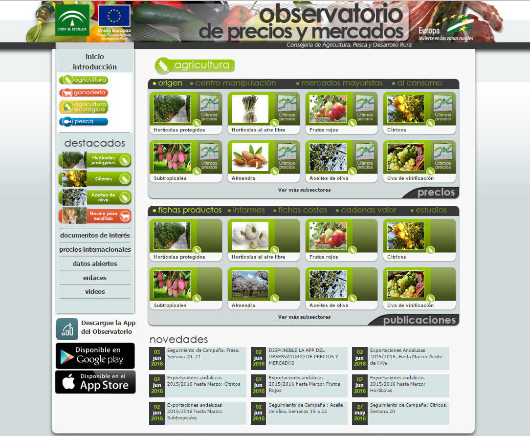 Al Observatorio de Precios y Mercados se puede acceder desde la página web oficial de la Consejería de Agricultura, Pesca y Desarrollo Rural. Esta plataforma, en la que actualmente están representados 64 productos agroalimentarios, lleva diez años reuniendo información y aportando datos para los agentes implicados en la cadena de comercialización y los consumidores. En 2015, 29.000 personas usaron la herramienta web, que recibió un total de 353.000 visitas.