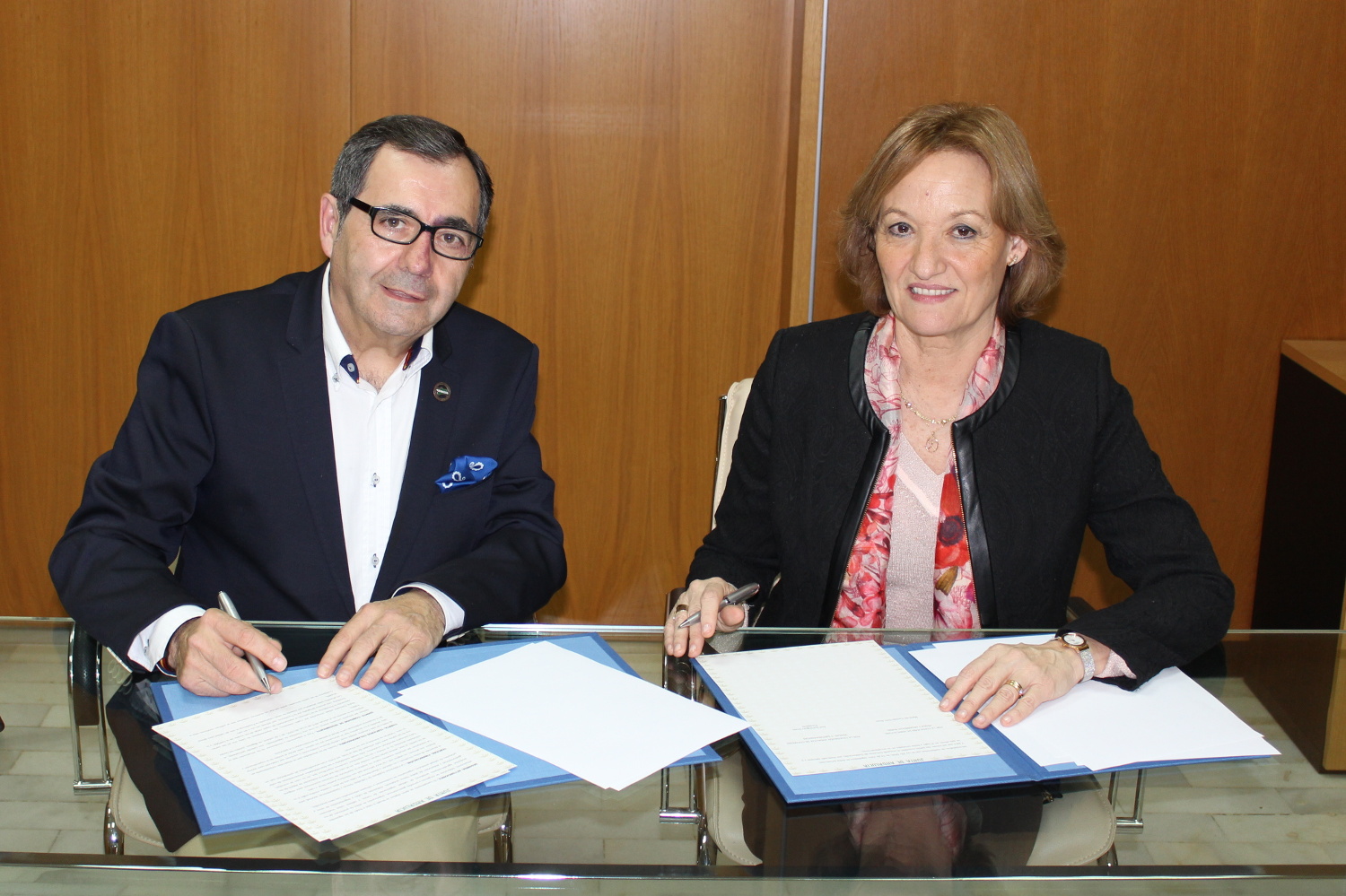 Carmen Ortiz y José Domínguez Oneto durante la firma del acuerdo