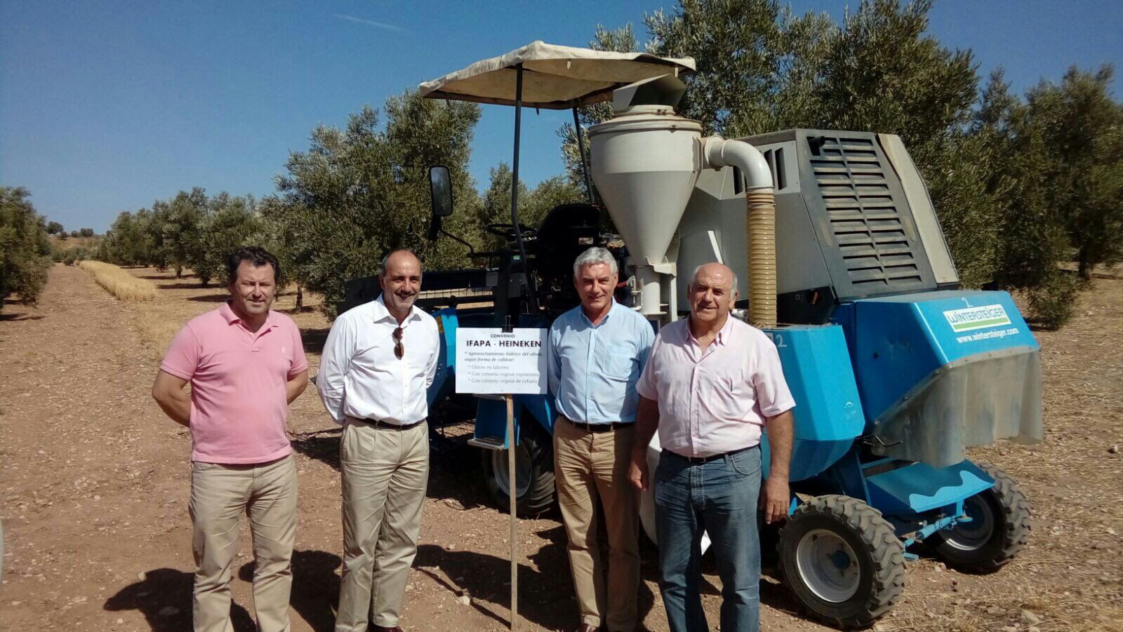 El Instituto de Investigación y Formación Agraria y Pesquera de Andalucía (Ifapa) ha procedido esta semana a la recolección de la primera cebada obtenida en cultivo mixto cebada-olivar en el marco del convenio de colaboración con la empresa Heineken para la investigación de la eficiencia de uso de agua en este cultivo mixto. El presidente del Ifapa, Jerónimo Pérez, asistió a esta primera siega en Huelma (Jaén) en el marco de los ensayos que durante cuatro años se realizarán en esta provincia. Las parcelas seleccionadas responden a los planteamientos considerados en la investigación: olivar de secano en plantación tradicional con más de un 8% de pendiente.