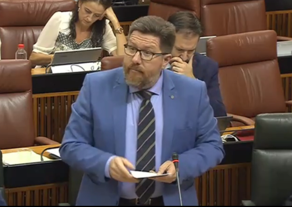 Rodrigo Sánchez Haro durante su intervención en el pleno del Parlamento de Andalucía