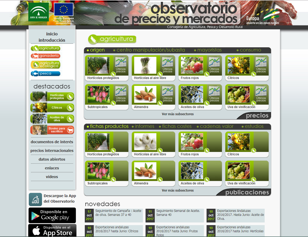 Imagen de la web del Observatorio de Precios y Mercados de Andalucía.