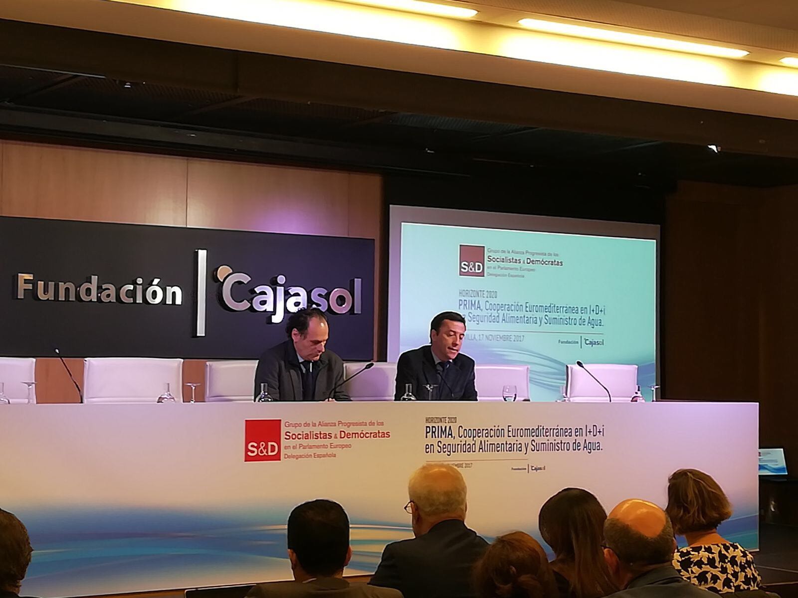 El representante de la Consejería de Agricultura ha intervenido hoy en la jornada ‘Horizonte 2020. Prima, cooperación euromediterránea en I+D+i, en seguridad alimentaria y suministro de agua’, organizada en Sevilla por la delegación española del Grupo de la Alianza Progresista de los Socialistas y Demócratas. Ricardo Domínguez ha protagonizado la conferencia ‘Europa y el Mediterráneo’ junto al viceconsejero de Medio Ambiente y Ordenación del Territorio, José Luis Hernández Garijo. Por parte de la Consejería de Agricultura interviene también en el encuentro el coordinador de I+D+F del Instituto de Investigación y Formación Agraria y Pesquera de Andalucía (Ifapa), Armando Martínez, que participa en la mesa redonda titulada ‘Seguridad alimentaria y suministro hídrico’.