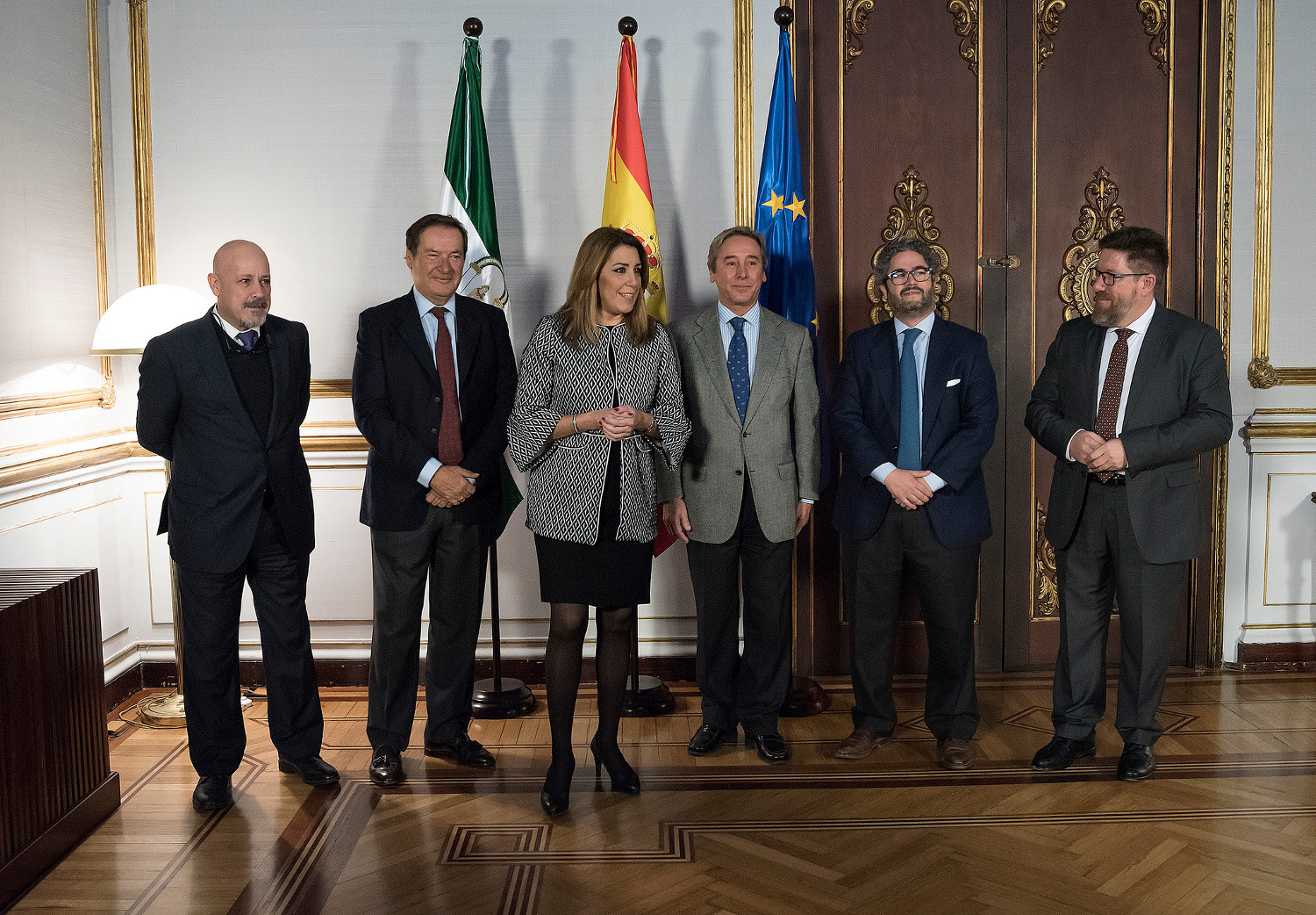 Susana Díaz y Rodrigo Sánchez Haro, junto a representantes de Asemesa.