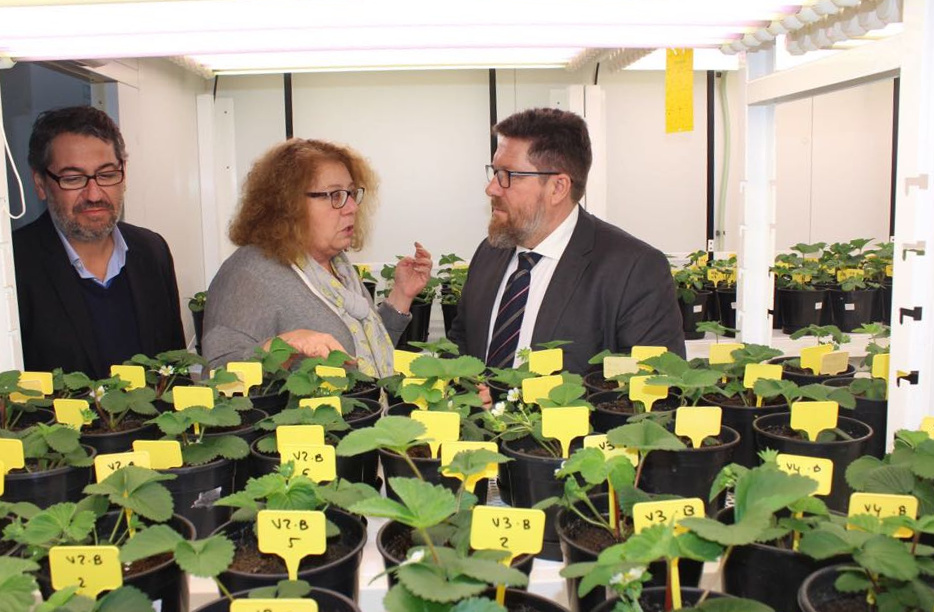En su recorrido por estas instalaciones, Sánchez Haro ha conocido también otros proyectos en los que trabajan los investigadores y técnicos de este centro sevillano como el ‘Proyecto de experimentación y transferencia en el cultivo de la fresa y otros frutos rojos’ dirigido a trasladar al sector conocimientos fiables sobre la situación actual de estos cultivos en la provincia de Huelva. Esta línea de trabajo, que cuenta con la finca El Cebollar para el desarrollo de la iniciativa, aborda, entre otros campos de estudio, la mejora del riego de la frambuesa y el arándano, la transferencia de conocimiento sobre técnicas de biofumigación y solarización adaptadas a los cultivos onubenses o la influencia de las técnicas de cultivo en la calidad del fruto y la producción de distintas variedades de fresa.