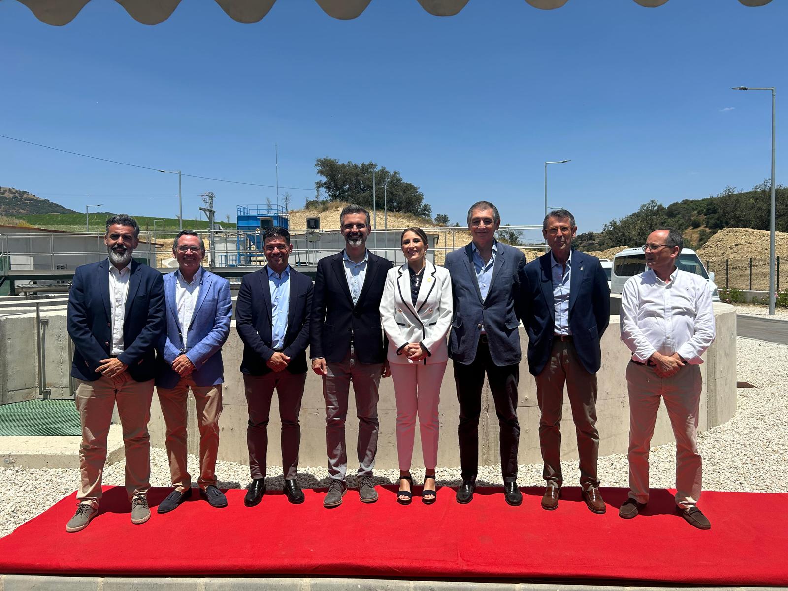 Foto de familia en la inauguración de la Estación Depuradora de Aguas Residuales (EDAR) y colectores de Arriate (Málaga)