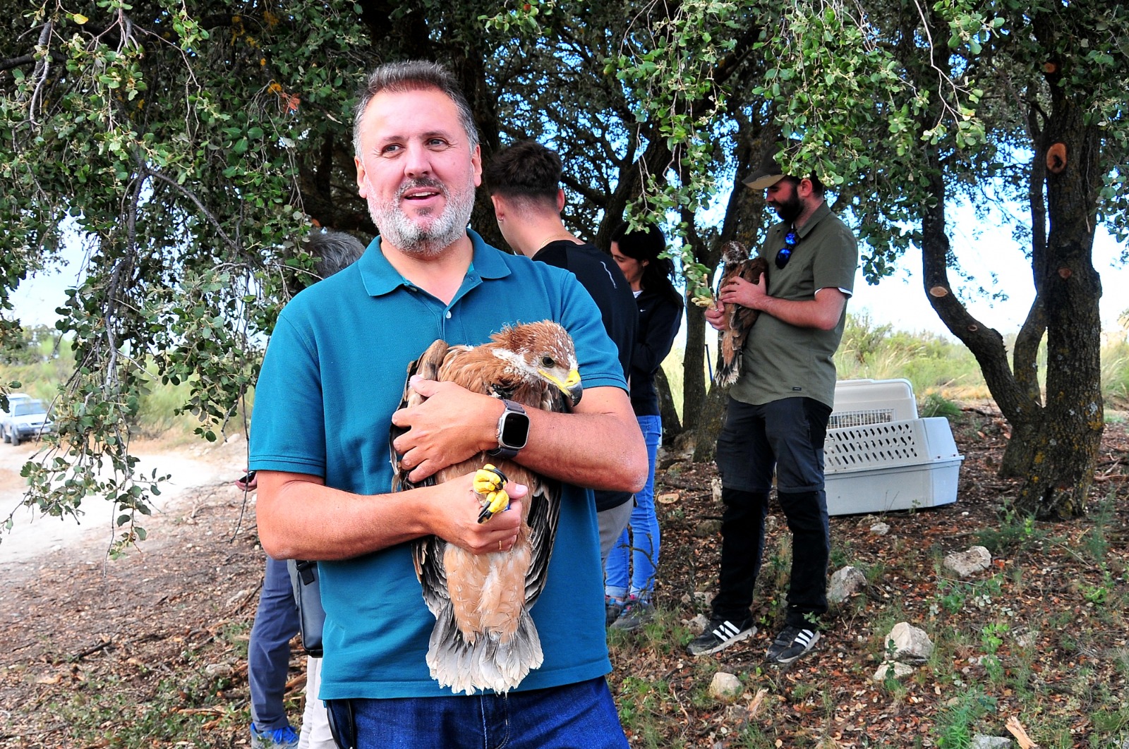 El delegado territorial de la provincia de Granada de la Consejería de Sostenibilidad, Medio Ambiente y Economía Azul, Manuel Francisco García, asistió a la introducción de los tres primeros pollos en las instalaciones de hacking (cría campestre), y recalcó el esfuerzo de los técnicos que trabajan en el plan de recuperación a través de la Agencia de Medio Ambiente y Agua de Andalucía que llevan a cabo las labores de mejora y expansión de la especie en Andalucía, "el compromiso de los expertos y técnicos de la Consejería de Sostenibilidad, Medio Ambiente y Economía Azul, en la conservación del águila imperial ibérica es extraordinario, realizando un gran trabajo que ha tenido una nueva recompensa en el día de hoy con la recuperación de estos pollos que seguro pronto veremos volar por la provincia". A la introducción asistieron igualmente personal del Plan de Recuperación, la Jefa del Servicio Medio Natural y el Coordinador Provincial de la Agencia.