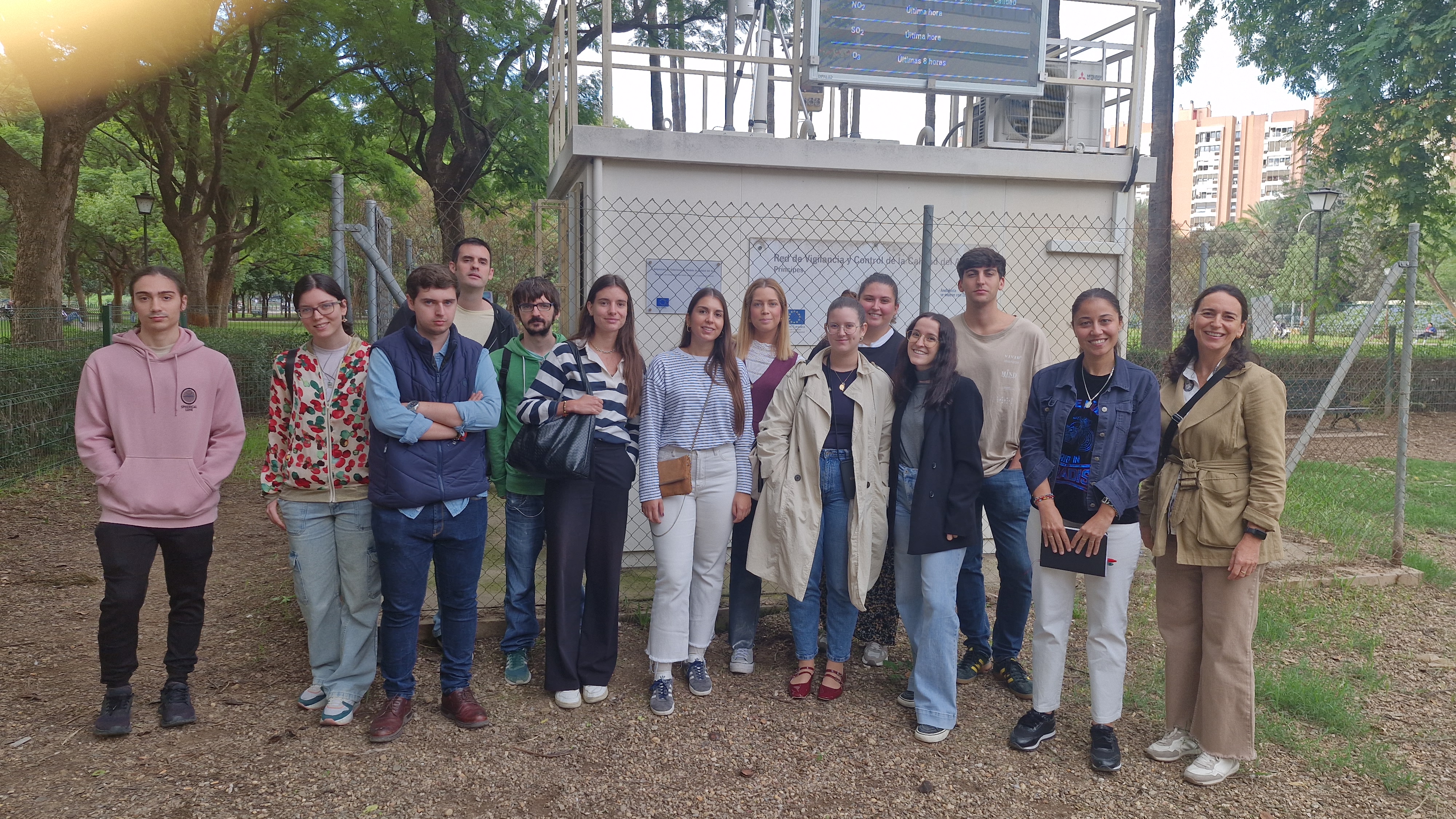 También se acompañó a los estudiantes de la Escuela Politécnica de Sevilla en su visita a la estación de la Red de Vigilancia situada en el Parque de Los Príncipes de Sevilla. El Centro de Datos de Calidad Ambiental de la Agencia realiza una supervisión permanente (24 horas al día) de los valores registrados en estas estaciones, activando los protocolos de aviso a la población cuando se superan los umbrales legales establecidos