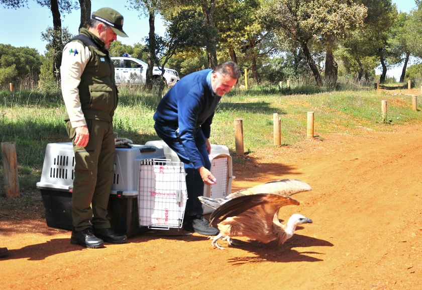 A finales del mes pasado se realizó una suelta de dos buitres leonados y tres cernícalos recuperados en el Centro de Recuperación de Especies Amenazadas (CREA) El Blanqueo, en el Parque Periurbano del Llano de La Perdiz (Granada). Los dos buitres leonados habían ingresado con síntomas de desnutrición, y los tres cernícalos comunes fueron recuperados tras sufrir colisiones.
