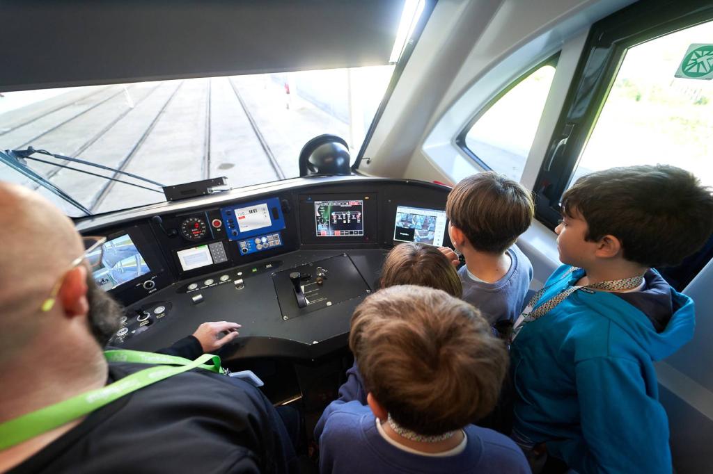 Posteriormente, el grupo se desplaza hasta los talleres y cocheras, donde conocen las particularidades del Trambahía, cómo se hace el mantenimiento de la flota de trenes y reciben nociones básicas de seguridad vial. Por último, la actividad finaliza con la visita al Puesto de Control Central, donde los alumnos observan en tiempo real la gestión del tranvía y se les informa de la labor que desarrollan los distintos perfiles profesionales del personal del Trambahía.
