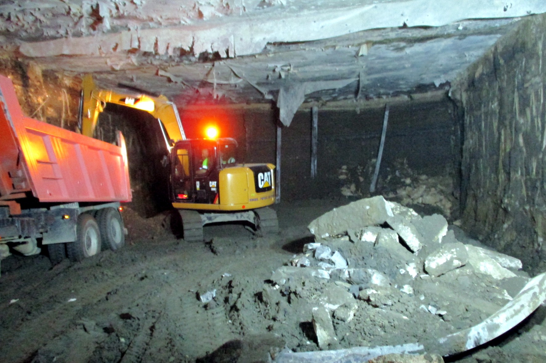 En el interior de este primer nivel de túnel ya excavado se abordan ahora los trabajos de ejecución de la losa intermedia que separa ambos niveles, y hasta la fecha se ha completado la parte correspondiente al reciento de la futura estación de Atarazanas, es decir, la que delimita la zona del vestíbulo de la zona inferior que alberga el andén, y que equivale al 24,5% de la losa intermedia del tramo.