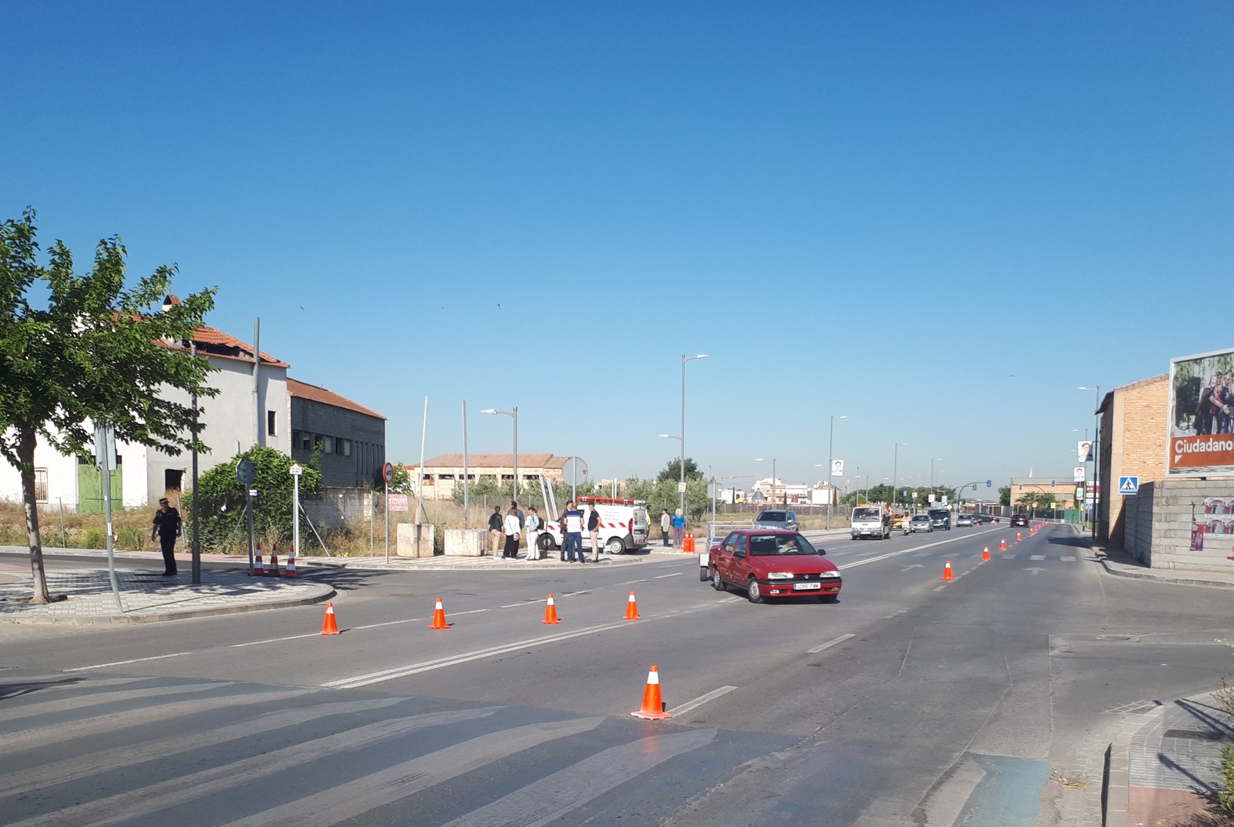Los trabajos se harán compatibles con el paso de vehículos, aunque la avenida Cristóbal Colón quedará reducida a una sola calzada, con un carril para cada sentido, en este tramo de intersección con el Camino del Baño en Churriana.