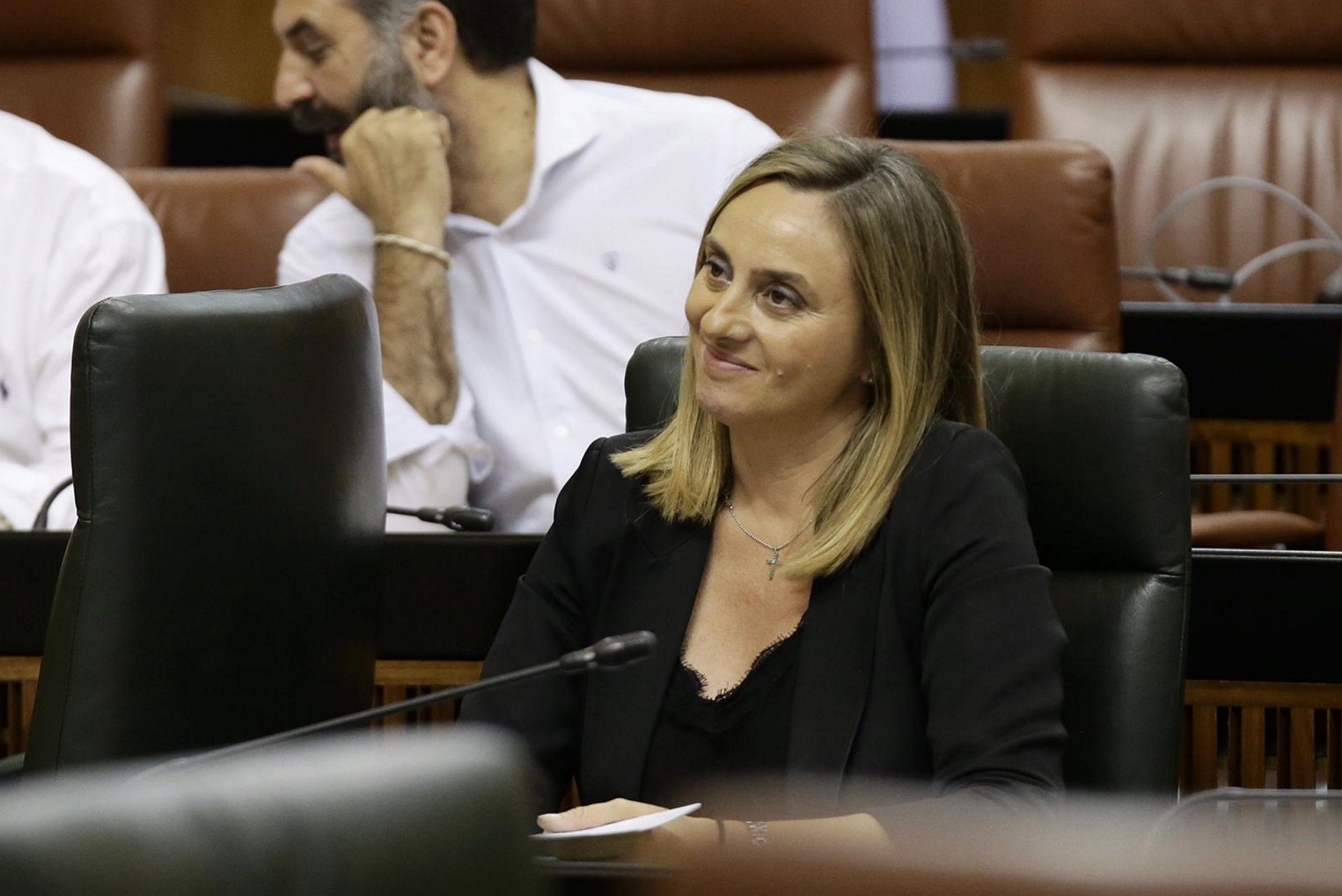 La consejera de Fomento asiste a la sesión parlamentaria.