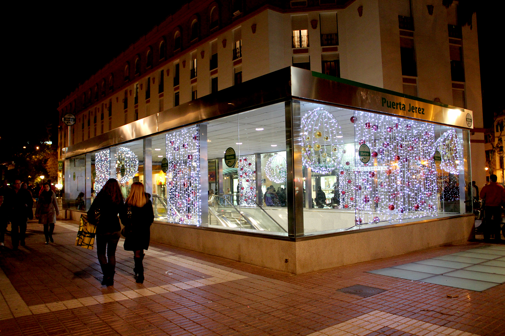 Estación de Puerta Jerez decorada con adornos navideños.