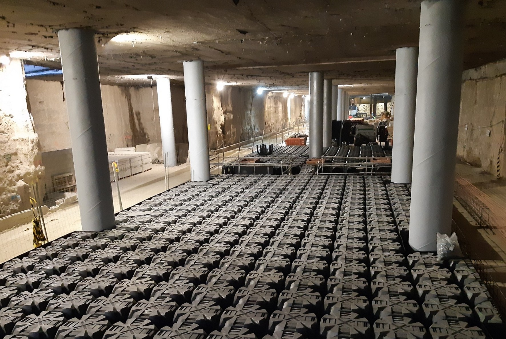 Las obras se han centrado en estos primeros meses en los trabajos para el revestimiento interior de los vestíbulos de estas dos estaciones.