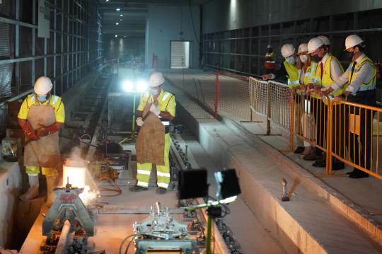 Moreno ha asistido en Málaga a la primera soldadura del carril de vía en la Estación de Atarazanas, una vez que se ha culminado esta fase de montaje de la vía en el andén. Allí, ha incidido en que una vez más el Gobierno andaluz cumple con lo prometido y ha explicado que a partir de ahora se continuará con los trabajos de superestructura de vía en el resto del trazado para completar este proceso en el kilómetro que hay entre Guadalmedina-Atarazanas y Renfe, una fase que cuenta con un presupuesto de 5,48 millones de euros.