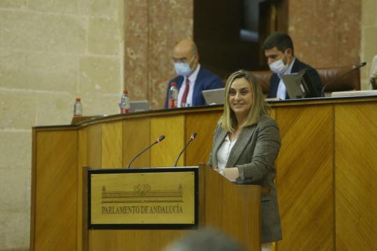 La consejera de Fomento, Marifrán Carazo, durante la comparecencia en el Pleno del Parlamento andaluz