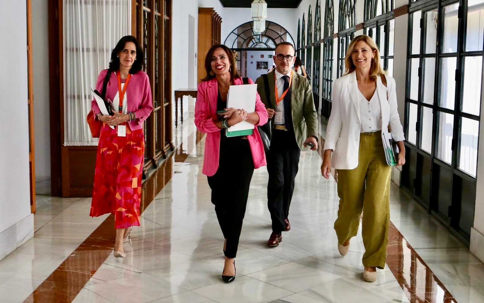 La consejera de Fomento, Rocío Díaz, a su llegada al Parlamento andaluz para la comisión de esta tarde.