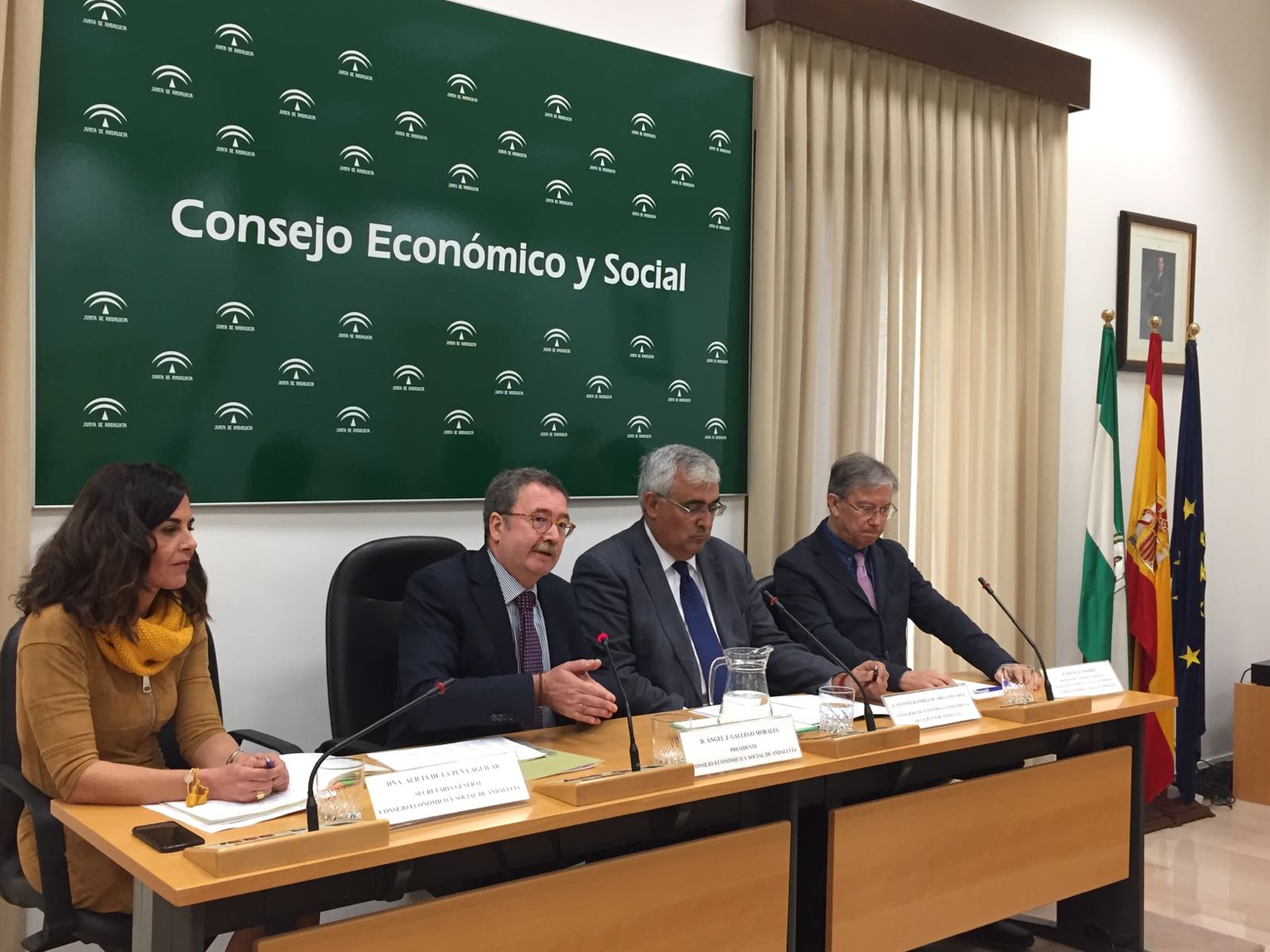 El consejero de Economía y Conocimiento ha presentado esta mañana en el Consejo Económico y Social de Andalucía el anteproyecto de la Ley Andaluza de Fomento del Emprendimiento, donde ha solicitado Dictamen sobre la norma para poder iniciar asimismo su trámite parlamentario.