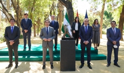 El presidente del Consejo, con Juan Manuel Moreno Bonilla en la presentación del modelo de las esculturas-homenaje a los profesionales que han luchado contra la COVID-19