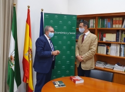 Ángel J. Gallego Morales y Alicia de la Peña Aguilar reciben en visita institucional, en la sede del CES de Andalucía, a Fernando de Arteaga Larrú, director de la sucursal de Sevilla del Banco de España.