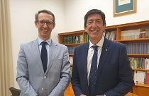 Juan Marín recibe en visita institucional, en la sede del CES de Andalucía, a Fernando de Arteaga Larrú, director de la sucursal de Sevilla del Banco de España.