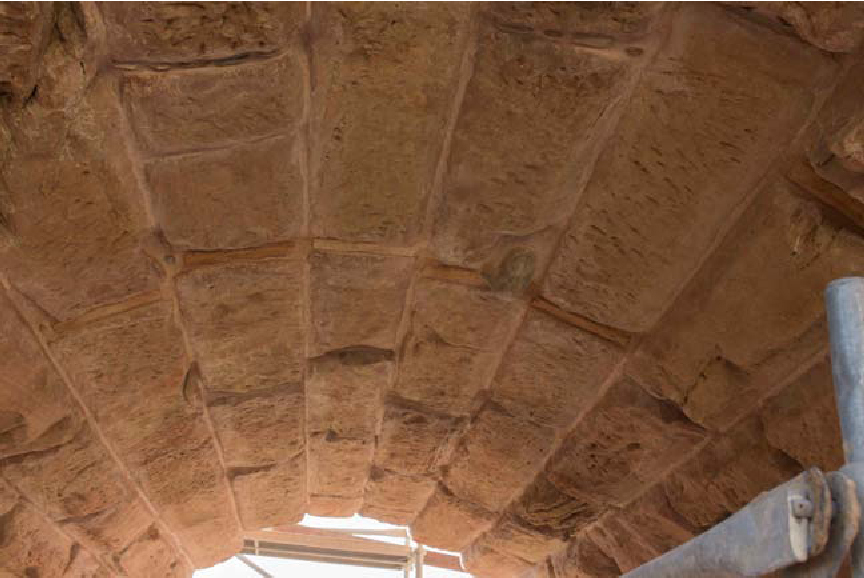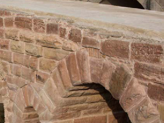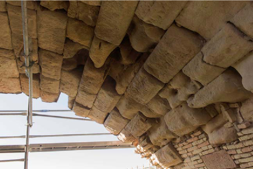 – El aparejo utilizado en la consolidación de dovelas fue distinto, ya que se colocó siguiendo la misma lógica estructural que las piezas a las que refuerzan, en abanico.