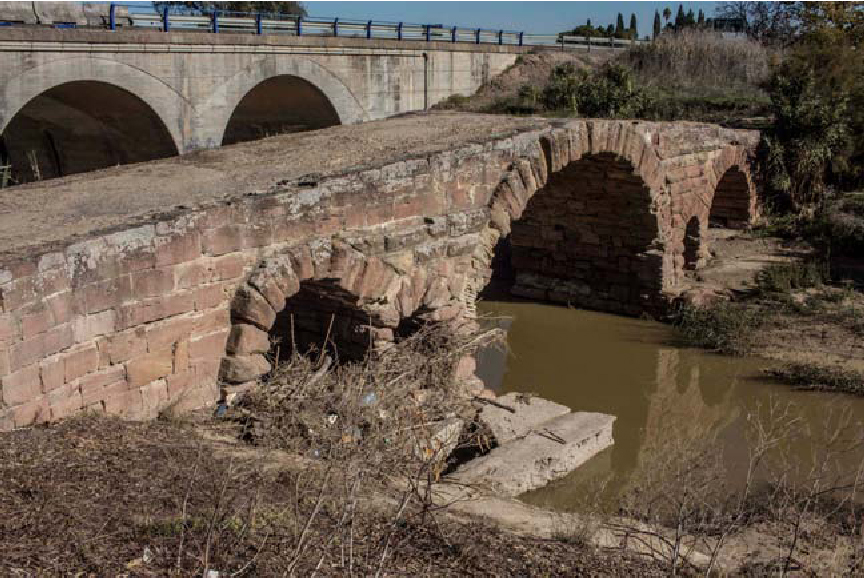 – Desvío, en 1986, del arroyo de las Cañas, que desemboca a escasos metros aguas arriba del puente y aumenta las inundaciones en periodos de lluvia y el caudal en general.