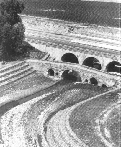 – Construcción, en 1992, del puente de la autovía A-IV, que eleva el cauce del arroyo al actuar como presa.