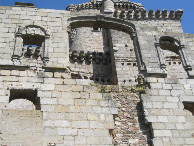 La situación del castillo propiamente dicho era también grave pese a la mayor solidez de la fábrica empleada en su construcción. El granito, que es prácticamente la única piedra utilizada tanto en la cantería como en la ornamentación (la pizarra se utiliza exclusivamente en los rellenos de muros), se muestra, pese a su inicial resistencia al desgaste, erosionado y debilitado. Esto ocurre en ocasiones por la utilización previa de granitos no sanos (material previamente degradado).