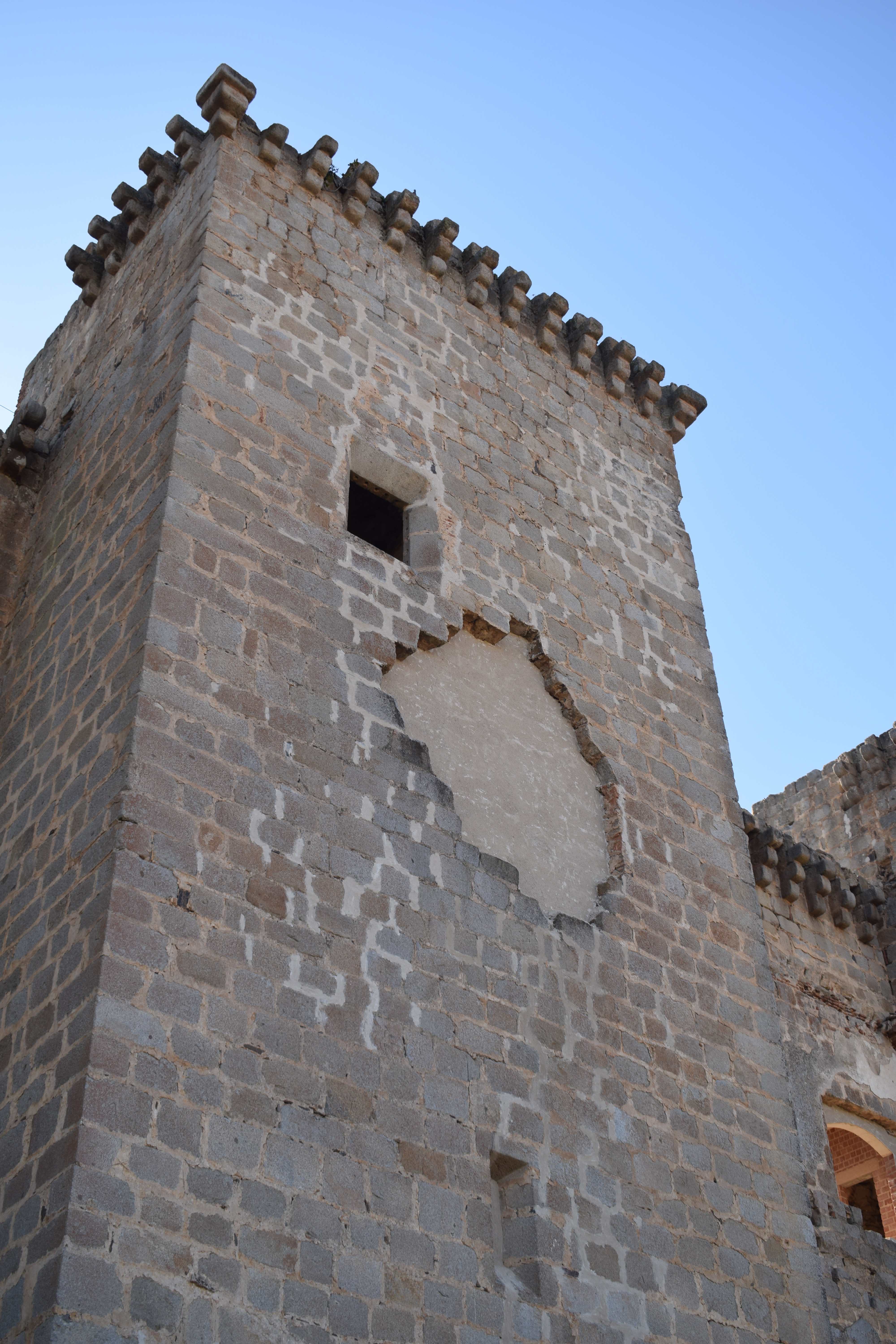 De mayor complejidad fue la reintegración de huecos con derrumbes en los muros y torres del castillo, para la que se empleó el criterio de diferenciación material y retranqueo de las nuevas superficies construidas, de manera que su diferencia con el original fuera clara y permitiera futuras intervenciones de reconstrucción.