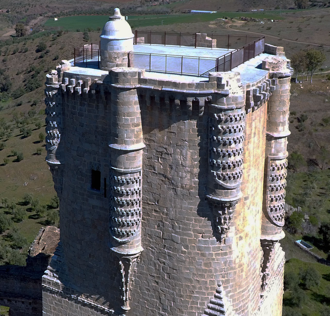 Por último, se ha realizado la adecuación de caminos con objeto de permitir el recorrido tanto por el recinto amurallado como por el perímetro del castillo. En el interior del castillo se ha creado una pasarela para acceder a la torre del homenaje, el elemento más emblemático del conjunto.