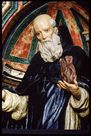 De la labor escultórica realizada por Risueño, conviene resaltar el naturalismo patente en la cabeza de san Antonio Abad, la delicadeza y redondez de los niños y angelotes y, sobre todo, los efectos de gran teatralidad que consigue el artista en el grupo principal del retablo. Además de tallar las esculturas, José Risueño las policromó, logrando efectos tan sublimes como el realismo del rostro de san Antonio Abad, las excelentes encarnaciones de los angelotes y la riqueza de las túnicas y mantos de las santas.