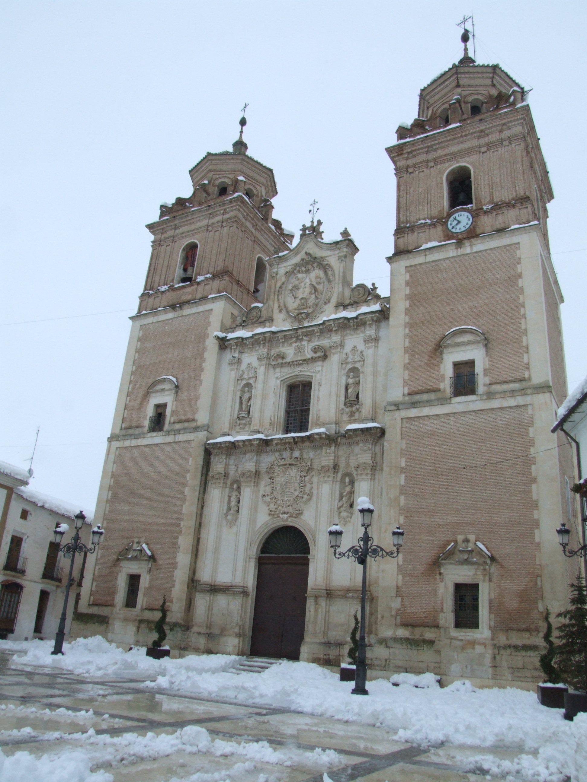 El primer marqués de los Vélez, Pedro Fajardo, mandó construir una primera iglesia de estilo mudéjar a principios del siglo XVI bajo la advocación de San Pedro, que sería transformada por fray Francisco Olivares durante la segunda mitad del siglo XVII. Tras los terremotos de 1724 y 1751 se levantó una nueva iglesia encargada por el X Marqués de los Vélez, Antonio María Álvarez de Toledo, al arquitecto Pedro de San Agustín, monje jerónimo que había llegado desde el monasterio de La Ñora de Murcia. Siguiendo sus diseños, Francisco Fernández realizó la fachada principal. Finalmente, el templo fue inaugurado en 1769.