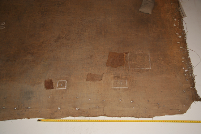 En cuanto a la serie de lienzos de la vida de san Ignacio de Loyola situados en los laterales del presbiterio, estos presentaban un deficiente estado, destensados y oscurecidos. Los cuatro lienzos de gran formato de la parte inferior estaban directamente clavados al muro. Su posición bajo dos balcones en contacto directo con los marcos, había contribuido en gran medida a su deterioro.