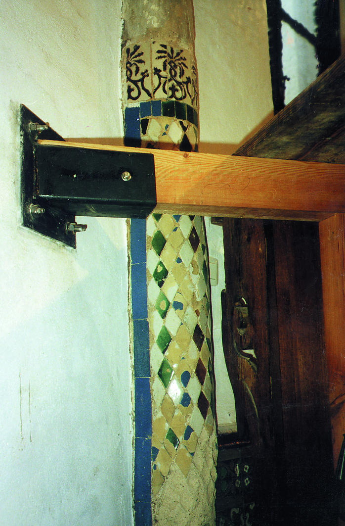 En cambio, toda la caja del camarín estaba desplomada hacia delante. A esto se sumaba una fuerte desnivelación hacia la izquierda y el hundimiento de la bóveda del camarín, que había ocasionado la pérdida de numerosas piezas.