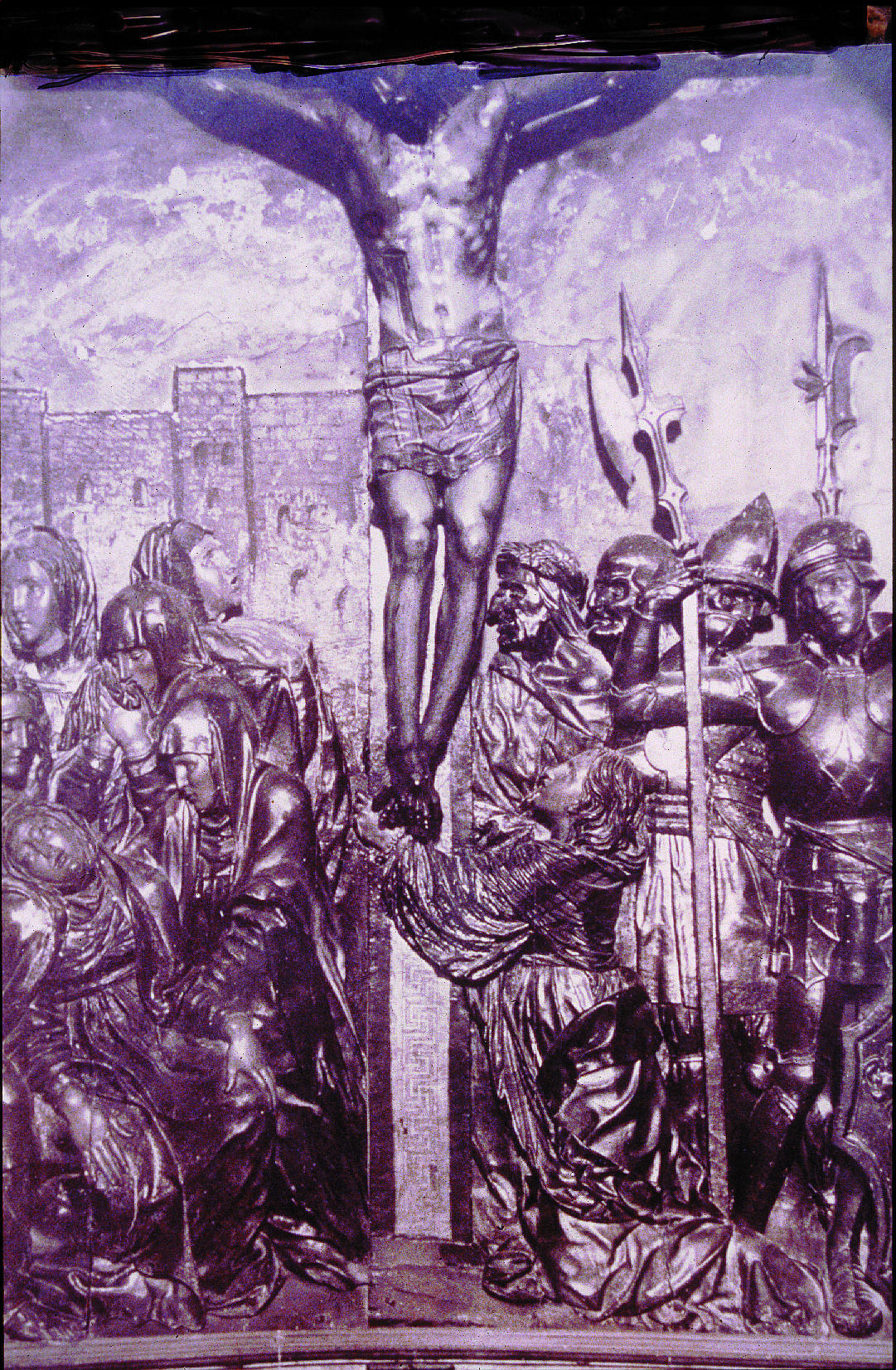Después de asentar y fijar la base de preparación y la policromía se procedió a eliminar la gruesa capa de barniz pigmentado y el resto de estratos ajenos a la superficie original. Se reintegraron solamente aquellas lagunas cuya existencia perjudicaba la visión del conjunto. Finalmente se dio una capa de protección con resina acrílica.